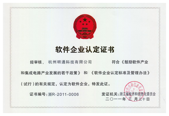 軟件企業認定證書