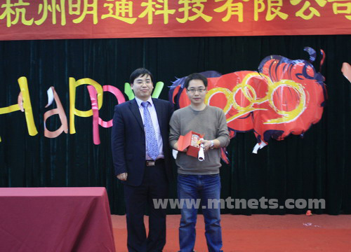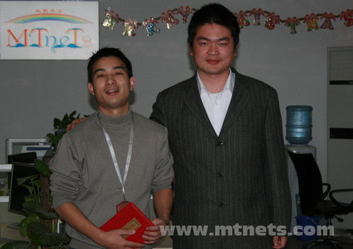 王神州獲明通公司2008年度11月份模范獎,工控網主管蔡凌飛為其頒獎。