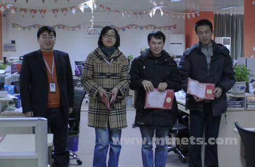 張浩鵬、于滿、宋和兵、陳剛等新進員工通過公司培訓,迅速融入各自網站的市場銷售工作,突破銷售第一關,獲得破零獎。