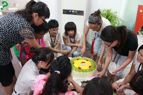 每個月的生日會聚集著當月的壽星們,一起分享生日蛋糕,一并接過行政部門精心準備的生日禮物,還有來自全公司200位兄弟姐