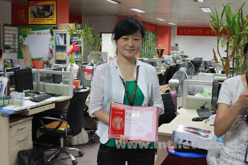 技術部王希琛、編輯部韓平、人事部張莉莉再各自崗位上以優異的表現獲得公司和同事一致好評,獲得公司2010年度8月份模范獎。