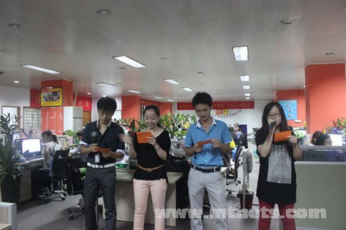 早會在公司四位員工的歌聲《明天會更好》中濃情開場。四位伙伴分別來自不同的部門和崗位,同時也是新老員工的代表。早會上,陳勝明總經理也發表感言,回顧過去,暢談未來,讓所有興旺寶人相信:公司的明天會更加美好。