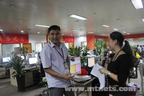 市場部的郭威贏得精美竹炭毛巾禮盒,向大家展示獎品