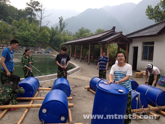 項目部:大家配合扎皮筏