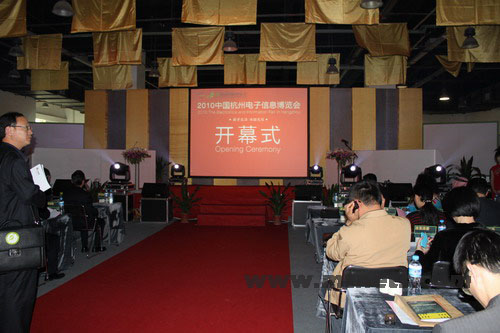 29日下午,2010中國(guó)杭州電子信息博覽會(huì)開(kāi)幕式在海報(bào)機(jī)器人熱舞表演中隆重揭開(kāi),省委常委、市委書記黃坤明為本屆展會(huì)發(fā)來(lái)賀信。國(guó)家工業(yè)和信息化部總經(jīng)濟(jì)師周子學(xué),商務(wù)部外貿(mào)發(fā)展事務(wù)局副局長(zhǎng)賈國(guó)勇,國(guó)家金卡工程協(xié)調(diào)領(lǐng)導(dǎo)小組辦公室主任張琪,副市長(zhǎng)佟桂莉,省、市有關(guān)部門以及中國(guó)臺(tái)灣區(qū)電機(jī)電子工業(yè)同業(yè)公會(huì)負(fù)責(zé)人一起出席了開(kāi)幕式。明通科技等眾多杭州知名電子商務(wù)企業(yè)受邀參加了開(kāi)幕式,共同見(jiàn)證電子信息博覽會(huì)的精彩一刻。