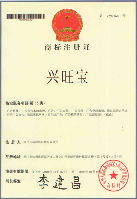 品牌提升競爭力,明通科技一直致力于商標品牌戰(zhàn)略。繼明通商標通過注冊商標認證之后,明通旗下品牌興旺寶再次獲得國家注冊商標認證。2010年10月7日經(jīng)國家商標局批準的“興旺寶”正式通過注冊商標申請,并核發(fā)商標注冊證。