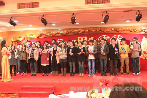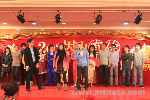 本次年會由精彩的部門表演,優秀員工及主管頒獎以及抽獎組成。各部門的表演突破創新,精彩絕倫,觀眾叫好聲不斷。慶賀公司2011年的豐收,本次年會獎品豐碩,除一二三等獎之外,特別設置了溫暖獎,“最”獎,本命年獎,龍年大吉獎,讓全體員工共享盛宴的同時,滿載而歸。充分見證了公司“創造網絡神話,分享發展成果”的優良企業文化。