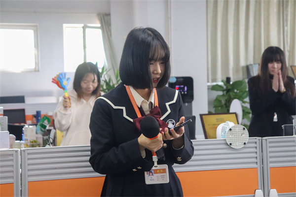 2022年10月19日下午,興旺寶各部門員工齊聚一堂,兩位均來自編輯部的主持人趙雅嫻、劉瑜沉著穩重,用生動有趣的你比劃我猜小游戲帶動起所有人的熱情,各部門員工紛紛爭奪搶答機會,歡聲笑語不斷。在機床網魏佳佳所帶來的一首《微微》下,興旺寶明通第三季度頒獎典禮在歡聲笑語中徐徐拉開帷幕。