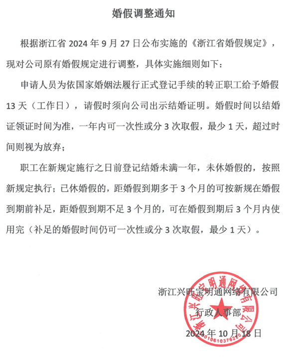 我單方面宣布,興旺寶這波贏麻了!前腳《浙江省婚假規(guī)定》剛剛頒布,興旺寶就跟上了,一點(diǎn)不帶拖泥帶水的。整整13天婚假!它這就來(lái)了,即刻實(shí)施!